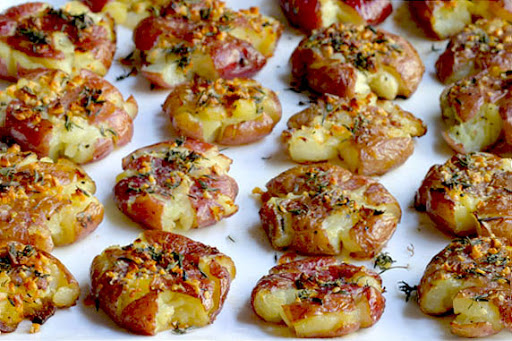 Place 1/4 pat of butter on top of each smashed potato before baking.
