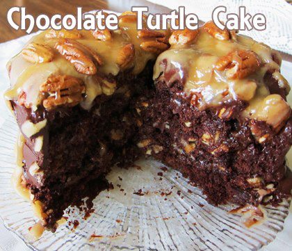 Enjoy a chocolate turtle cake straight out the oven. Warm is the best way to have them!