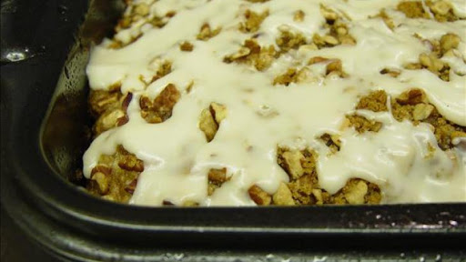 Bake 20 to 25 minutes. While cooking mix all topping ingredients together. May need to mix in TINY bits more water to make it just a little runny for a drizzle. While warm drizzle with topping.