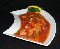 Al suavizar las verduras agregar pasta de tomate, harina diluida en las 3 tazas del caldo de los camarones (langostinos) y dejar cocer durente 15 minutos.