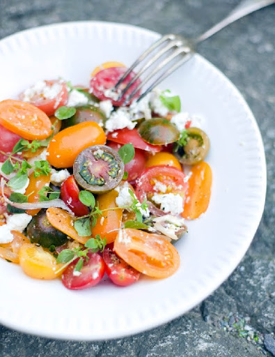 - 2 handfuls of mixed heirloom tomatoes