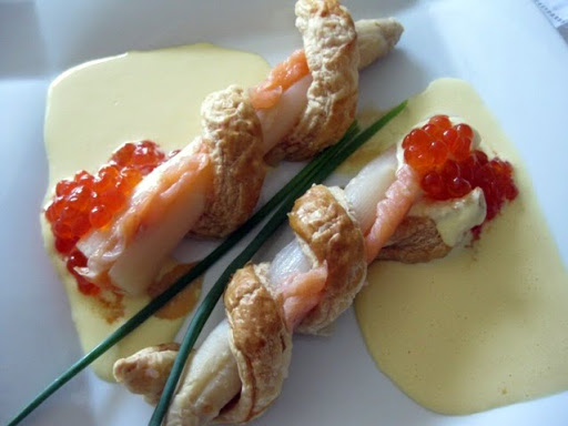 ESPARRAGOS CON SALMON EN SALSA HOLANDESA