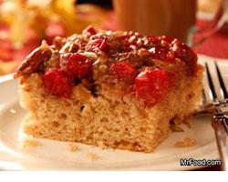 In large bowl, combine oil and granulated sugar, and beat with an electric mixer until light and fluffy. Beat in eggs one at a time then stir in vanilla. Beat in flour mixture alternately with sour cream. Pour batter over cranberry nut mixture and bake 25 to 30 minutes, or until toothpick inserted in center comes out clean.