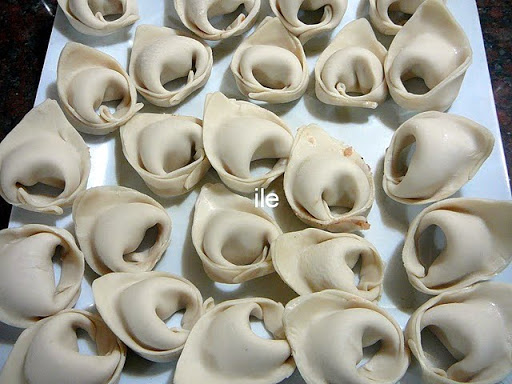 Al colocarlo sobre el plato uno los extremos apretando con ayuda de mi dedo índice y el pulgar, haciendo un anillito, y sigo armando el resto de los agnolottis