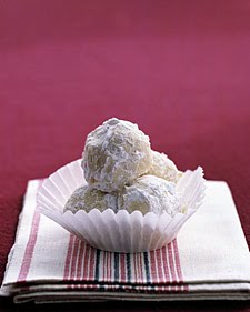 2.Roll dough into 1-inch balls; place 2 inches apart on a baking sheet. Bake until just starting to brown, 15 to 20 minutes. Roll the warm cookies in confectioners' sugar; let cool completely.