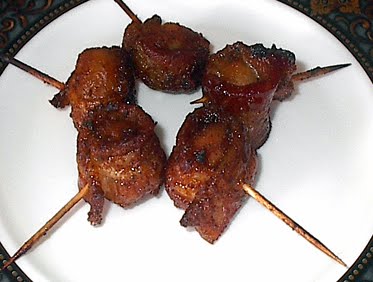 Mix Dijon mustard and horseradish and spread on slabs of bacon. Rollup and secure with toothpick and deep fry.
