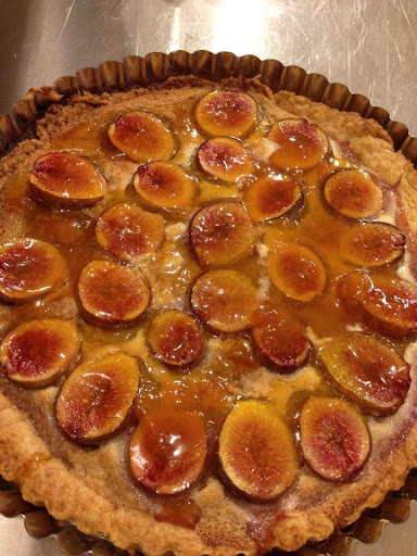 Finely grind almonds with sugar in processor. Add egg, butter and 2 teaspoons rum. Process until batter forms. Pour filling into crust. Arrange fig halves atop filling. Bake until figs are tender and filling is golden and set, about 25 minutes.