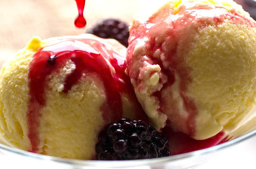 Sweet Corn Ice Cream With Blackberry Verbena Sauce