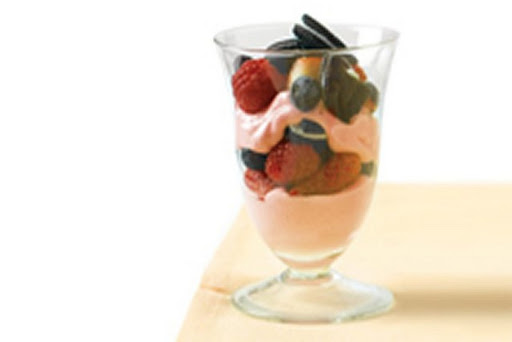 Spoon yogurt mixture, berries and chopped cookies alternately into 6 dessert dishes.