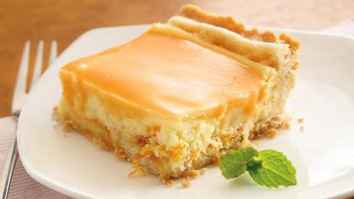 To serve, cut into 6 rows by 4 rows, using thin, sharp knife and wiping blade occasionally. Cover and refrigerate any remaining dessert squares.
