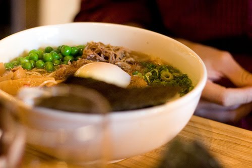 7. Remove the chicken from the pot and add the roasted bones to the broth, along with the bacon. Adjust the heat as necessary to keep the broth at a steady simmer; skim the scum and replenish the water as needed. After 45 minutes, fish out the bacon and discard it. Then gently simmer the pork bones for 6 or 7 hours—as much time as your schedule allows. Stop adding water to replenish the pot after hour 5 or so.
