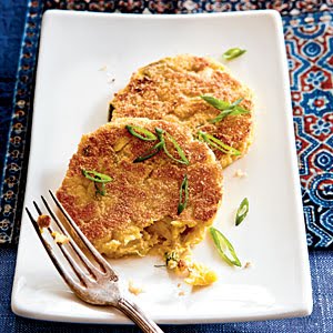 2. Place cornmeal in a shallow dish. Divide squash mixture into 12 equal portions, shaping each portion into a 1/2-inch-thick patty. Lightly coat each patty with cooking spray.