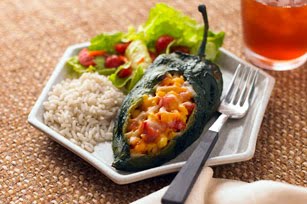 Se rellenan los chiles ya asados y pelados. Se sirven en una cama de salsa de jitomate con zanahoria, apio, ajo, laurel, caldo de pollo, pimienta y tomillo.