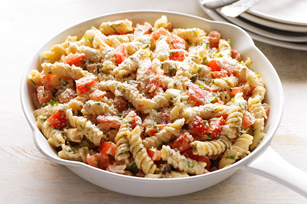 Add 1/3 cup OSCAR MAYER Real Bacon Bits to pasta mixture along with the tomatoes.