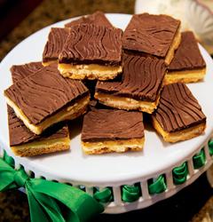 7. When caramel has set, melt butter and chocolate in double boiler over low heat.