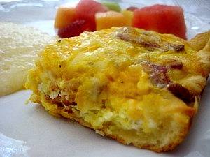 Unroll and place crescent rolls in the bottom of a 9 x 3 inch baking dish. Brown sausage and place on top of rolls. Layer with cheese. Mix eggs, milk, salt and pepper. Pour over sausage and cheese. Bake at 350 for approximately 30 minutes.