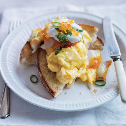Soft-Scrambled Eggs with Smoked Sablefish and Trout Roe