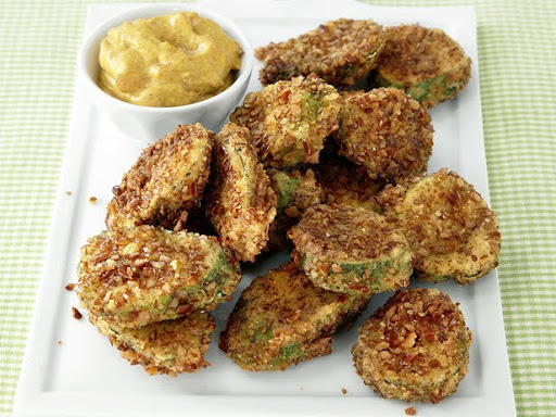 Pretzel Crusted Pickle Chips with Mustard Sauce