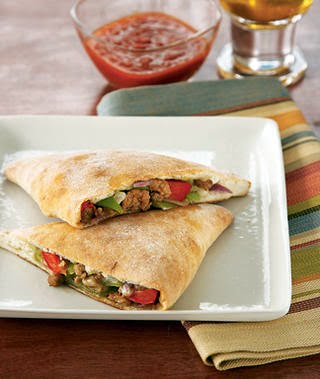 Take a pass on the pizza and try this fun calzone-inspired pie. It only takes 30 minutes to make and is loaded with bubbly Italian cheese, turkey sausage and sliced onions and peppers.