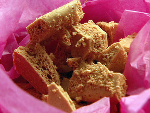 I was going to say that this isn't as fun as it sounds, but then I reconsidered. Hokey pokey is the Cornish term for honeycomb, and is wonderful eaten in golden shards or crumbled into the best vanilla ice cream. I include it here as it is the perfect present to take to a dinner party. Better than flowers, as they need to be put into a vase, better than chocolate, which people tend to smile politely at, but put away in a drawer. I've found no one can resist a bit of hokey pokey. The quantities I've specified don't make an awful lot - enough to fill a little tin 12 cm diameter and 6 cm deep / 4 and a half inches diameter and 2 and a half inches deep -but any more and you'd be sued by your dentist.