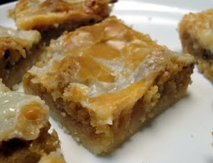 Bake at 350 degrees for 10 minutes. Let cool in pan on a wire rack; spread with Cream cheese Topping and bake 30 more minutes or until set. Cut into bars. Makes 3-1/2 to 4 dozen.