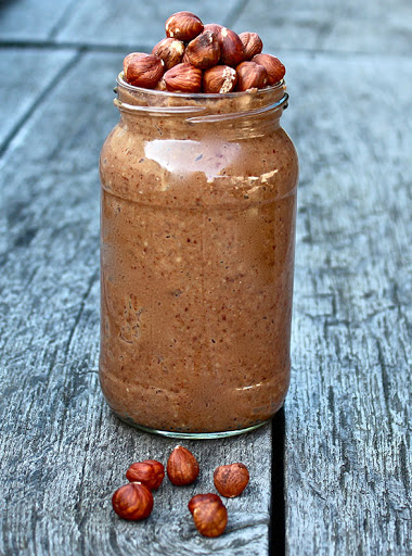 Start by soaking the hazelnuts in water overnight, or for at least six hours – this is so important and the recipe just won’t work if you don’t do this! To soak simply place the nuts in a bowl and cover them with filtered water, then leave to one side. Once you are ready to make the Nutella drain the water from the bowl and discard it. Then place the nuts in a food processor with the pitted dates, fresh water, maple syrup and raw cacao (if you want the banana touch then add the banana at this point too) and blend for about 5-10 minutes, until a very smooth paste forms. Then store it in an airtight jam jar in the fridge. Enjoy!