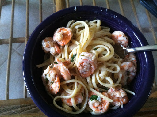 When the shrimp are almost done, add 1/4 cup of fresh squeezed lemon juice (It only took me 1 lemon), add the noodles absorb the lemon and shrimp flavor.