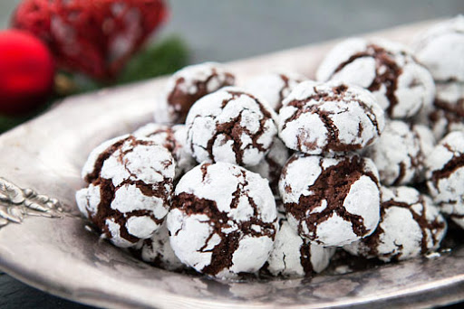 Drop teaspoonfuls of dough into powdered sugar. Roll and shape into balls. Place on greased pan. Bake for 10-12 minutes.