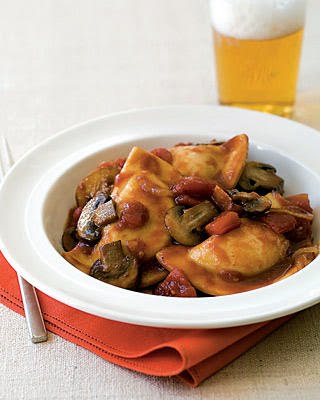 3. Add onion to skillet with drippings and cook, stirring, 3 minutes. Add mushrooms and 1 Tbsp water; cook 3 minutes or until mushrooms are softened. Add diced tomatoes and bring mixture to a boil.