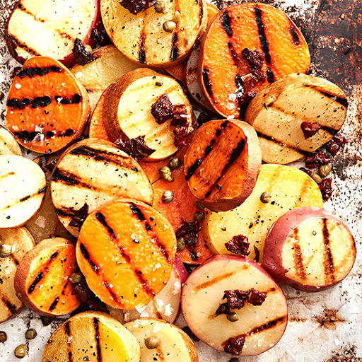 For a charcoal or gas grill, place potato slices on ta grill rack directly over medium heat. Grill for 15 to 20 minutes or until potatoes are tender and browned, turning once.