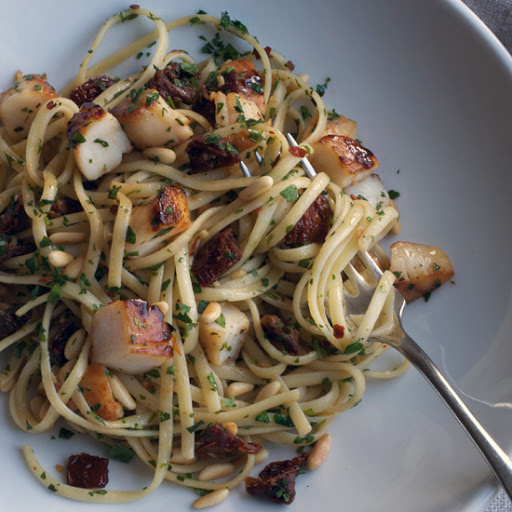 Linguine with Scallops, Sun-Dried Tomatoes, and Pine Nuts