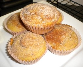 •When the puffs are done, remove from cups and, while still hot, roll the tops in melted butter and then in the cinnamon sugar.