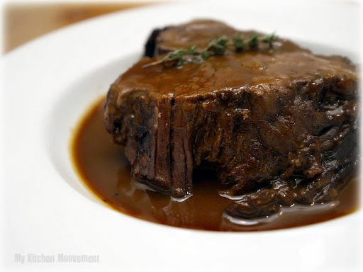 Remove the strings from the roast, and slice the meat. Serve warm with the red wine jus spooned over it.