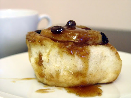 Cut the cinnamon buns into 1 inch thick slices. Place cut side down on top of the sticky sauce. Cover with a tea towel. Let stand in the oven with the light on and door closed for 45 minutes or until the dough doubles in size. Remove tea towel and bake at 350°F (175 C) for 25 to 30 minutes.