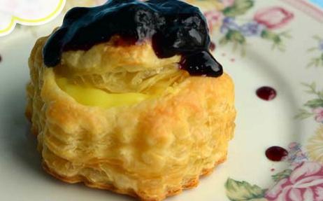 Return top to the pastry shell and put about 1-2 teaspoons of blackberry preserves on top of the shell.