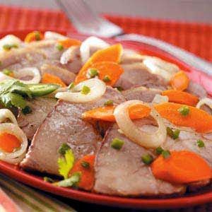 Transfer roast and vegetables to a serving platter; keep warm. Strain cooking juices and skim fat. Pour into a small saucepan. Bring to a boil; cook until liquid is reduced to about 1 cup. Serve with roast and vegetables. Yield: 8 servings.