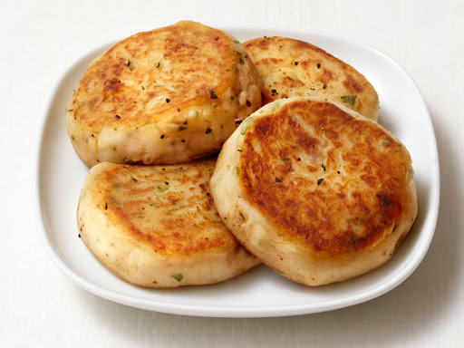 Combine 2 cups leftover mashed potatoes, a heaping 1/3 cup flour, 2 tablespoons milk and 1 tablespoon chopped mixed herbs in a bowl; knead until smooth. Season with salt and pepper. Divide into 4 balls on a floured surface and flatten each into a 3-inch patty. Melt 1 1/2 tablespoons butter in a large skillet over medium-high heat; add the patties and cook until golden brown, 4 to 5 minutes per side, adding more butter to the pan as needed. Season with salt.