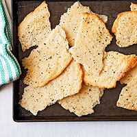 n food processor, mix 2/3 cup cheese, flour, baking powder and salt. Add 1/4 cup water and 2 tbsp. olive oil; pulse to form a dough. Roll out on floured 11-by-14-inch baking sheet; prick, top with remaining olive oil, cheese and pepper. Bake at 375 degrees for 17 minutes; break into pieces.