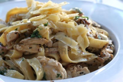 CHICKEN AND FETTUCCINI WITH MUSHROOMS
