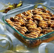 1-Dish yeast recipe has a PREP time of only 20 minutes. This recipe has been developed and written for a COLD oven start to the baking period. Pictured here in glass, a metal pan can be used with equally successful results.