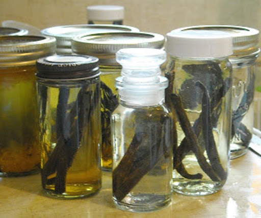 Put your jars in a cool dark cabinet and let them do their magic. Every week take each jar out and give it a shake. My cabinet has a lovely vanilla scent now. Each time I open the door a yummy rush of vanilla flows over me.