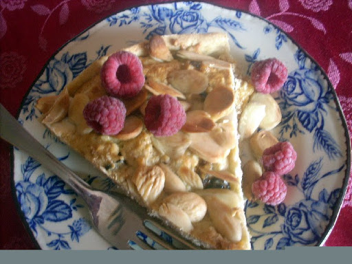 .Spoon this mixture over the pie dough. Finally sprinkle the chopped almonds and bake for about 40 minutes or until the cover is golden.
