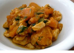 Add pumpkin, ginger, turmeric, coriander and cumin and stir for 1minute.