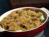 Melt the remaining 2 tablespoons of butter in an 8-inch saute pan. Add the bread crumbs to the pan and toss well to coat. Sprinkle with the remaining pinch of salt and pepper and the chopped parsley. Sprinkle the bread crumbs evenly over the top of the Brussels sprouts and bake until the top is golden brown and the sauce is bubbly, about 25 minutes