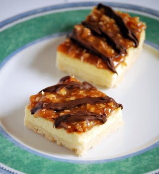 Spread caramel mixture over chilled cheesecake bars. Refrigerate for at least 1 hour to firm up caramel before drizzling with chocolate.