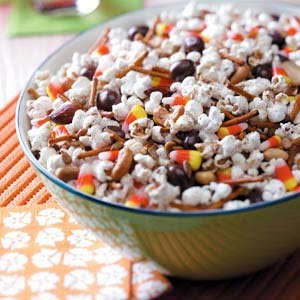 Candy corn makes this natural snack for fall gatherings. The sweet and salty flavors are irresistible. —Marlene Harguth, Maynard, Minnesota