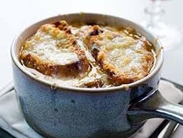 1. For the soup: Adjust oven rack to lower-middle position and heat oven to 400 degrees. Generously spray inside of heavy-bottomed large (at least 7-quart) Dutch oven with nonstick cooking spray. Place butter in pot and add onions and 1 teaspoon salt. Cook, covered, 1 hour (onions will be moist and slightly reduced in volume). Remove pot from oven and stir onions, scraping bottom and sides of pot. Return pot to oven with lid slightly ajar and continue to cook until onions are very soft and golden brown, 1 1/2 to 1 3/4 hours longer, stirring onions and scraping bottom and sides of pot after 1 hour.