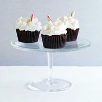 5. Topping. In medium-size bowl, with mixer on low speed, beat confectioners sugar, shortening and milk or water until smooth. Spread over cupcakes, about 2 tablespoons for each. Top each cupcake with 8 or 9 mini marshmallows. With a serrated knife, cut wrapped candy canes into 2-inch pieces. Unwrap and tuck a piece into each cupcake.