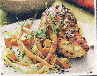 Pour sauce over chicken; add the lemon juice. If you'd like, dust with parsley and scallions.