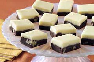 MICROWAVE white chocolate and remaining milk in medium microwaveable bowl on HIGH 1-1/2 min. or until chocolate is almost melted, stirring after 1 min. Stir until chocolate is completely melted. Spread over semi-sweet chocolate layer. Refrigerate 2 hours.